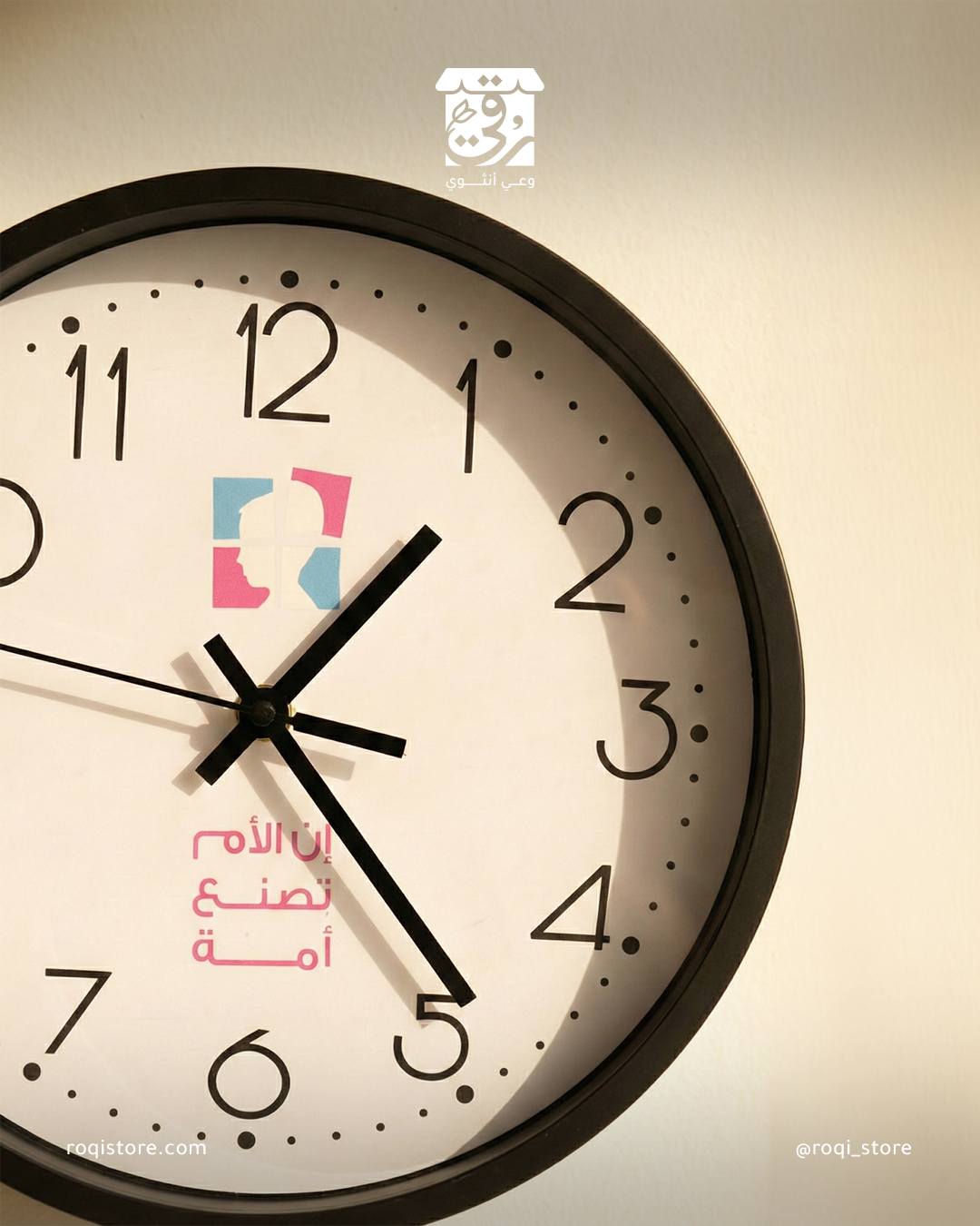 “دقاتٌ تضبط إيقاع العطاء في مملكتكِ. تتزين أمامكِ بعبارة ‘إن الأم تصنع أمة’، لتهمس لقلبكِ مع كل ثانية تمر 🌿: أن كل لحظة تقضينها في التربية والحب، هي استثمارٌ عظيم يمتد أثره لجيلٍ كامل ✨. تصميم عصري وأنيق.. يليق بامرأةٍ تجعل من وقتها جسراً نحو المستقبل.”